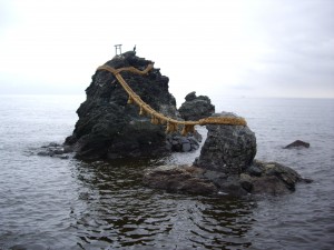 Futami is also close to Ise and it is where you can see the Wedded Rocks (Meoto-iwa). They are two rocks considered to be male and female and they are “married†by sacred ropes joining them. There is also a shrine, Futami Okitama jinja, on the edge of the ocean. A special festival is held here on the 5th of January every year to re-new the ropes. You can get to the Wedded Rocks by JR train from Ise: it takes about 10 minutes to Futaminoura station and then it is a 15 minute walk. Try to go during high tide, when the rocks are separated by water, or early on a clear day you might even see Mt Fuji in the distance.