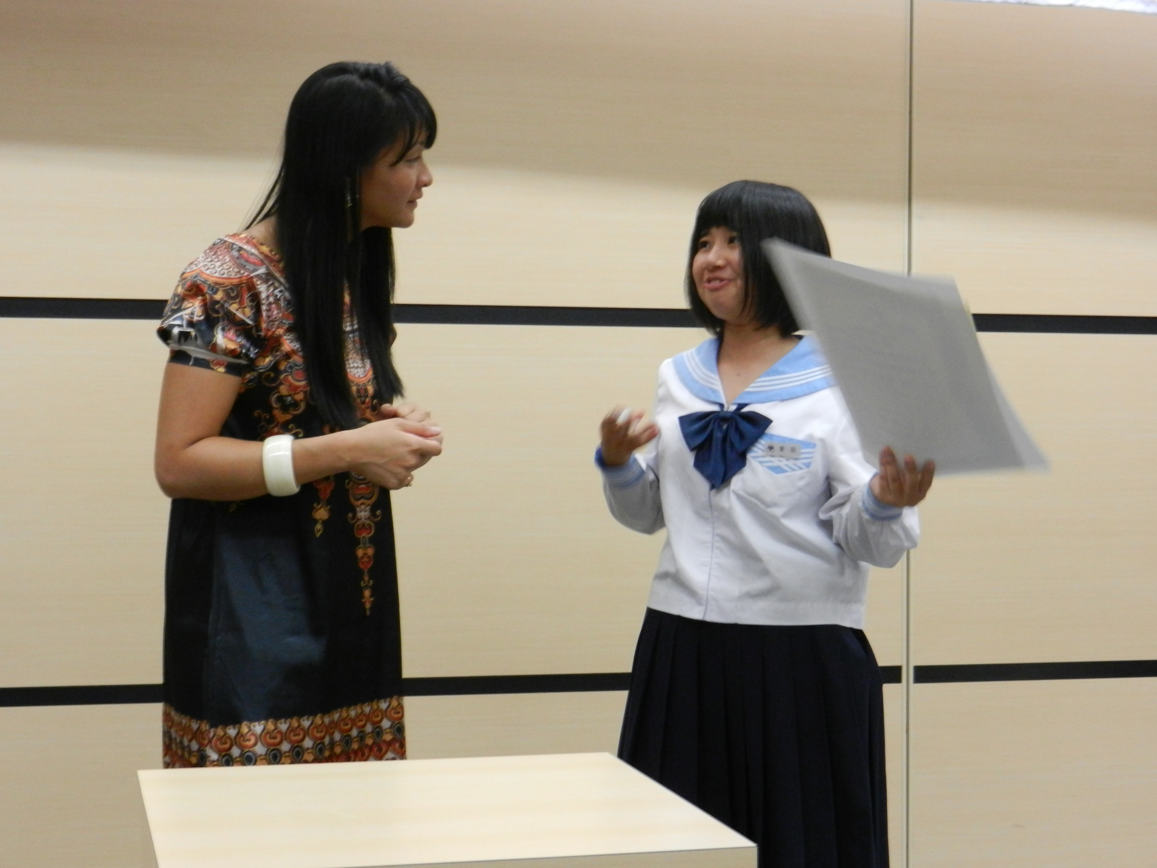 A month and a half away from the semi-finals, we continued her training. Emika practiced by performing at Suhama’s Cultural Day Festival. Everyone was impressed by her performance and she was complimented that she sounded like a native English speaker. I continued to cook up fun and creative methods to train her such as saying the entire speech to me with marshmallows in her mouth or dancing and singing as loudly as I could to distract her. Some days we’d spend more time having a cultural exchange than rehearsing. Over time, we realized that we had a lot in common: our silly personalities, our love for food, and our passion to win.