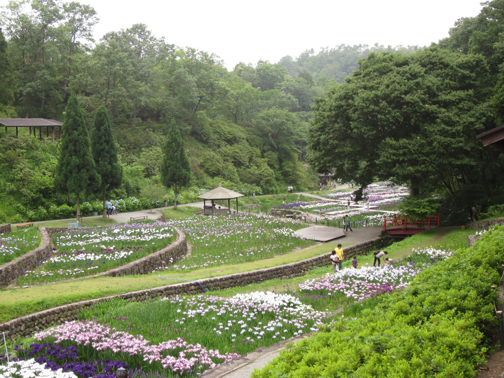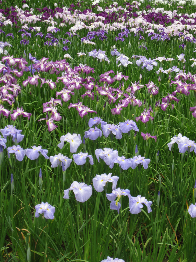 June is the time for the Iris Garden, where scores of variously colored iris plants stand through the rainy season, along with hydrangeas. The garden has other attractions during other months, but I think the iris bloom is the most spectacular.