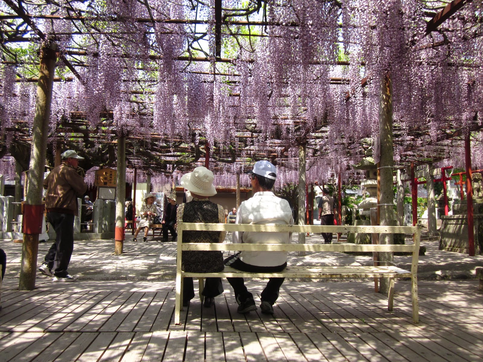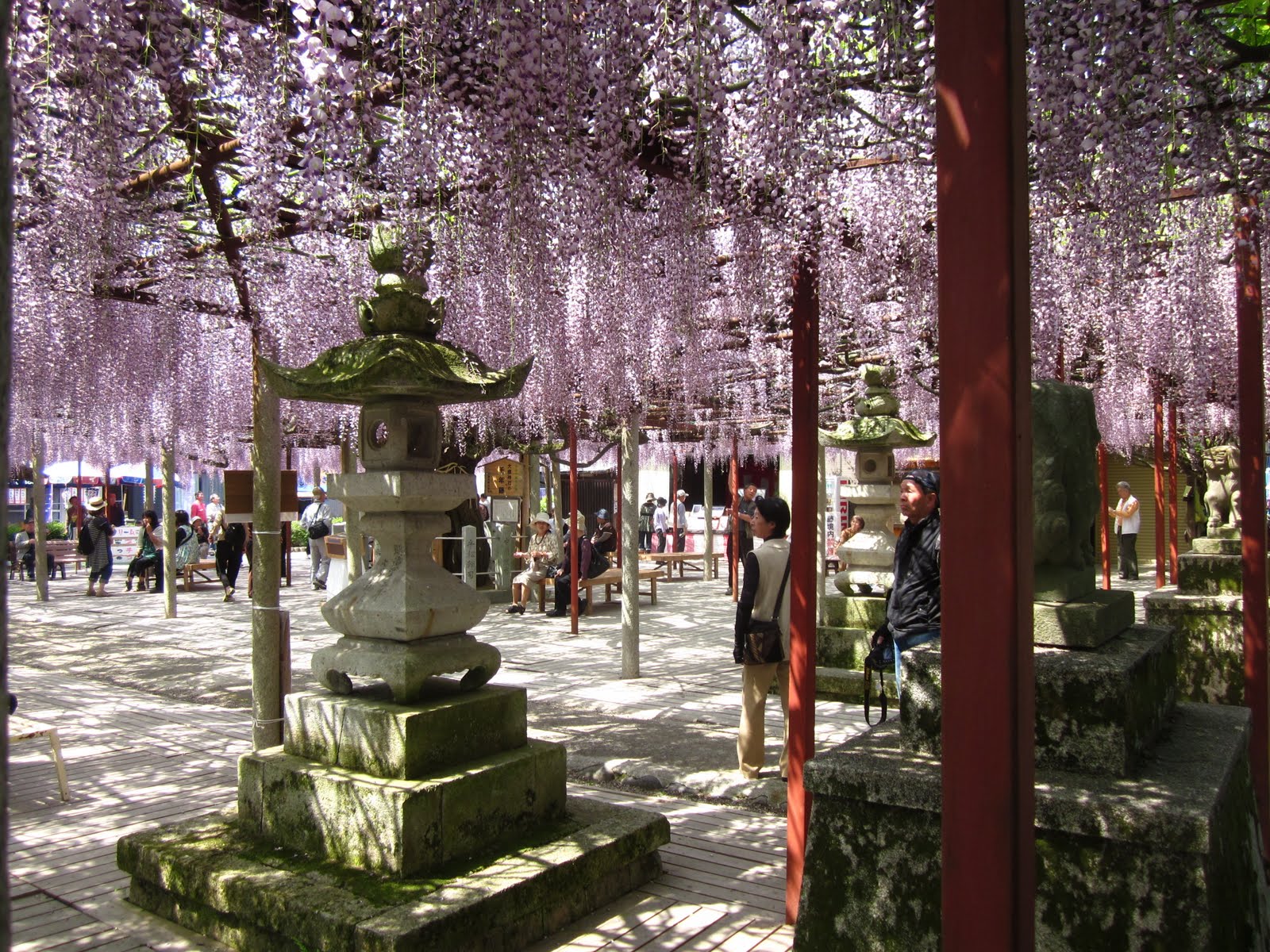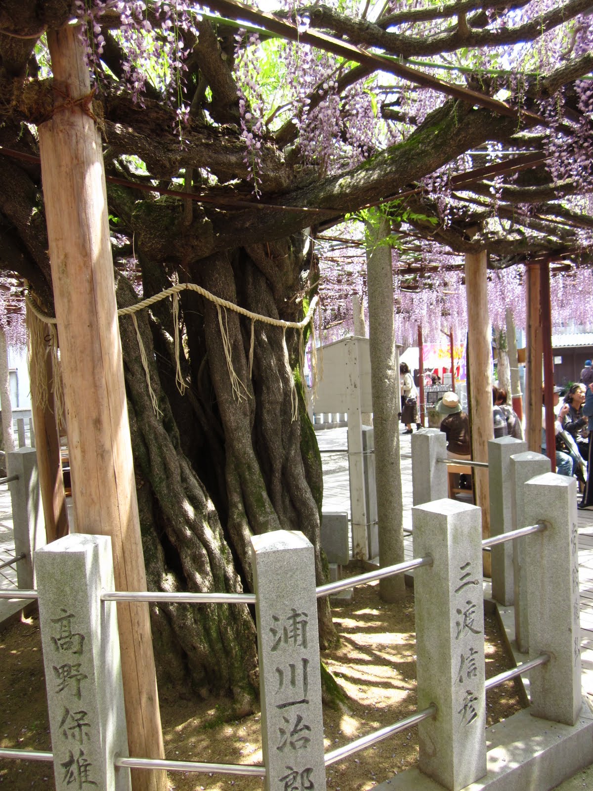 Special buses run for season offerings, especially to the shrine housing the åƒå¹´è—¤, sen-nen fuji (thousand-year-old wisteria) in early May, just around Golden Week, when the plant is dangling its millions of purple blossoms in all its scented glory.