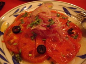 Chilean food, it turns out, is most similar to Spanish and other Mediterranean cuisines. Not knowing what to expect, and unable to decide, my companions and I picked an assortment to try and cover all the bases. We started with the Chilean salad (¥800), a simple plate of fresh tomatoes topped with a bit of onion and coriander and some light dressing. Frankly, I’m usually no great