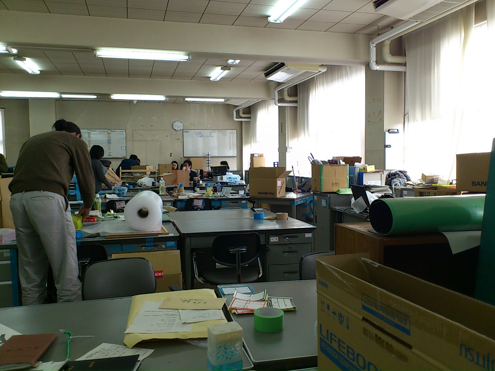 At the end of February, the earthquake-proofing of the main building of my school began. For the week before the move, the staff room was littered with cardboard boxes and teachers debating just how much of the crap in their desks they needed. Everyone had to take everything out of their desks and lockers, pack it into boxes, label said boxes, and unpack it all again in the temporary building. The number of teachers leaving all this until the last minute was great. ‘But I’m scared I’ll pack something that I’ll need in class’ bemoaned one of my JTEs. I tend to think that’s what lesson planning’s for, but each to their own I guess.
