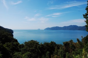 As we cycled north, we knew that we had a choice before us – taking the hillier road that hugged the lakeshore, or heading more inland, but with a (theoretically) more easy-going set of inclines. As we approached 長命寺町(ã¡ã‚‡ã†ã‚ã„ã˜ã¡ã‚‡ã†; ChÅmeiji-cho)it was still early in the day and we were feeling good, so the shoreline it was! I was ecstatic that we made this decision. Smaller, leaf-shaded roads kept us cool and sun dappled, with the occasional breaks in the trees providing further great views of Biwa and great excuses to have a short rest. There wasn’t a cycle path on this section, and the road was pretty narrow at times, but don’t miss it!