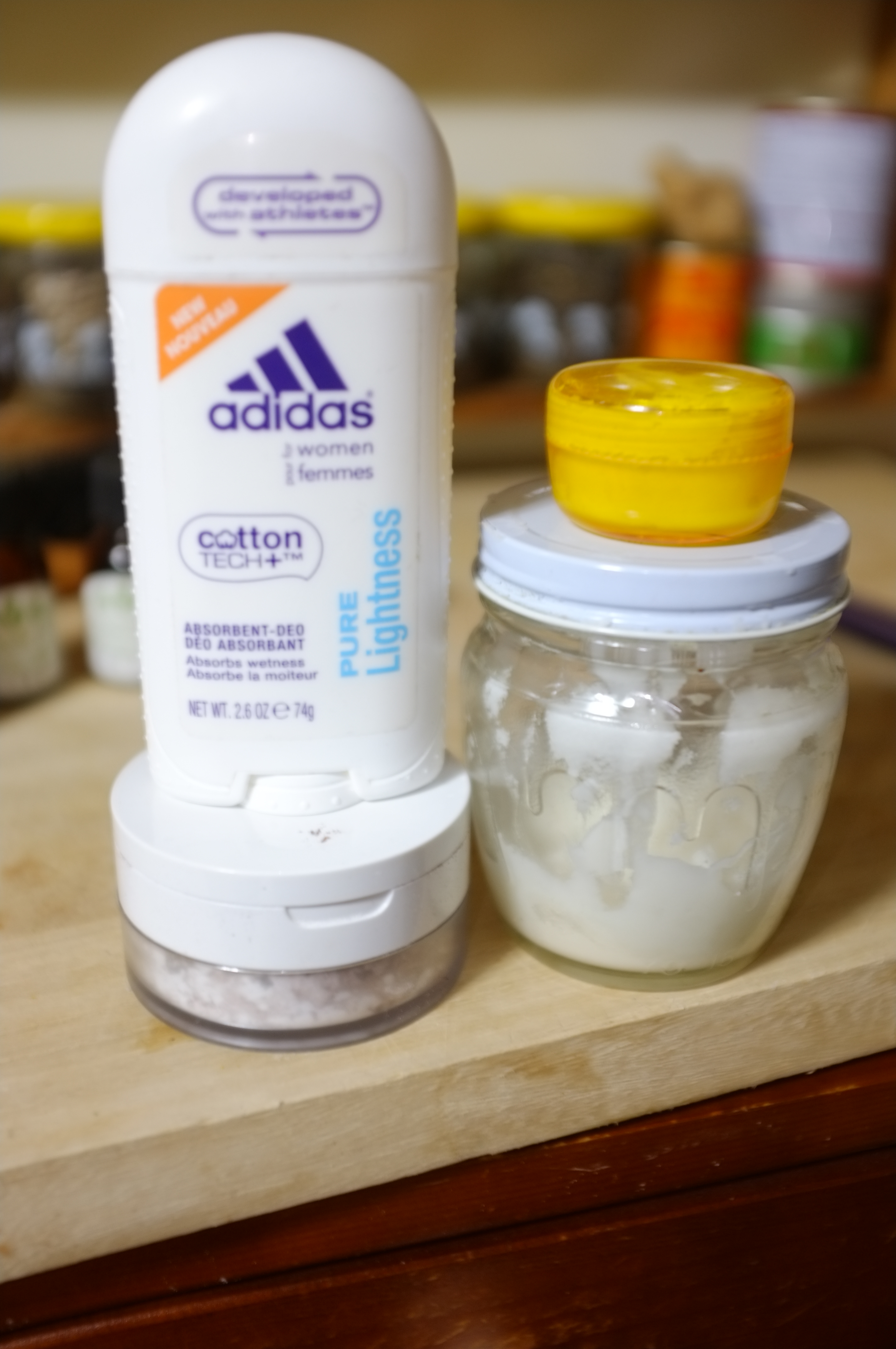 I checked online and found that people are now making serious profits on this stuff. $15 per bar is not sustainable, so with little other alternative, I resorted to checking locally for a new brand. After scouring every drugstore in my town, I managed to find two liquid deodorants. They were heavy on the perfume, but my only options. At first test, I seemed to tolerate one that was citrus scented. Upon putting it on my skin, however, I found the scent overpowering, and by noon I was desperately trying to wash my skin so that I could make it through the rest of my day without being nauseous. Upon getting home, I dumped the bottle and contemplated my options. I certainly didn’t want to smell like a stereotypical hippie at work, but I also didn’t want to buy and toss tons of packaging while experimenting with new products I was almost guaranteed to hate.