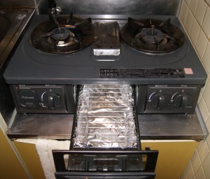 Whilst I do miss a proper oven for baking and roasting, the Japanese stove is a worthy replacement. Not only can you steam, simmer and sauté on the hob (and most importantly heat your Baked Beans for that little taste of home) but a good Japanese stove also includes a small grill. This narrow grill is ideal for cooking fish or vegetables and is a great healthy alternative to frying.
