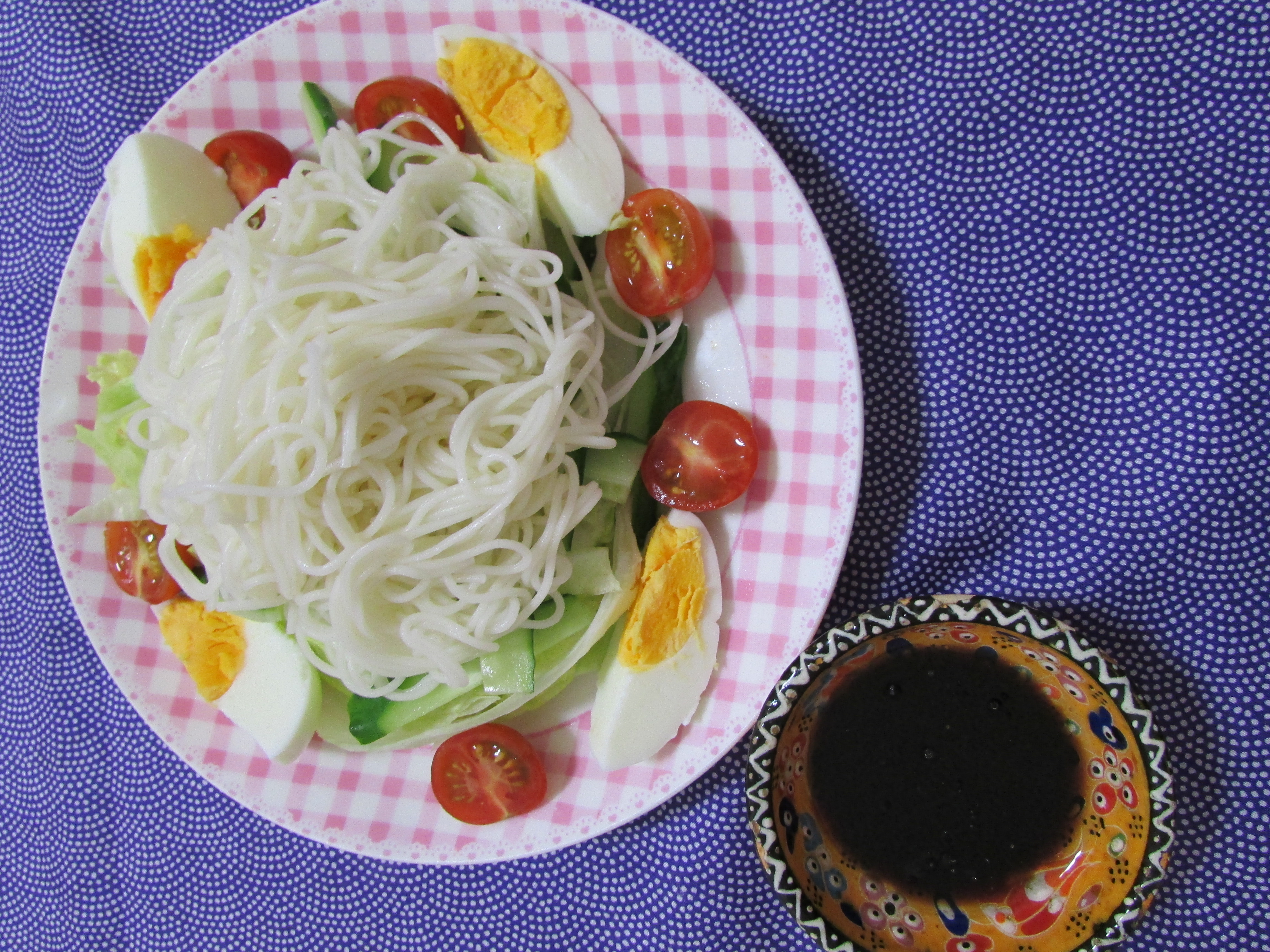 “Atsui†needn’t be the only word you use this summer to make small talk in the staff room. Make this easy peasy Japanesey somen lunch and you’ll be bantering about bentos till school’s out. Somen noodles are made of wheat flour and are usually served cold. With an easy dipping sauce, they can be a great addition to your leafy salad.