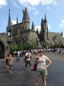 Personal Experience: I had a blast! The park is small and could easily be covered in three hours or less, if there were no crowds. The lines for Honeydukes and Filch’s Emporium are no joke, although I think Honeydukes and Zonko’s are worth the wait. In the late afternoon, I did see a street cart selling Chocolate Frogs and other candies, but the variety was limited. Be sure to visit the bathrooms which are hilariously decorated in various shades of fake mold and include a soundtrack of Moaning Myrtle. The Forbidden Journey is pretty cool and though the line is long, walking through the different sets enhances the experience. Tip: it is possible to sneak to the head of the line if you ask an attendant for the “singles’ lineâ€. You’ll be led through the castle down a plane boring hallway, skipping the statues and scenery, but your wait will be much shorter.