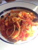 Arriving at Bambino Kobe Coffee on a third floor, we entered into a cabin themed café decorated with wood tables, counters and images reminiscent of Bambi. It’s a cozy atmosphere where guests have the option of sitting at tables or on comfortable couches. Our host, Mr. Shinohara Tomoyuki, already had water waiting at our tables and after looking over the menu many of us ordered food and drinks before diving into the conversation. The lunch menu included salad and a number of pastas, including your usual spaghetti with tomato sauce, but with an option to put a cheese omelet on top. Others opted for the breakfast-dessert fusion choosing French toast or waffles topped with a healthy serving of cream.