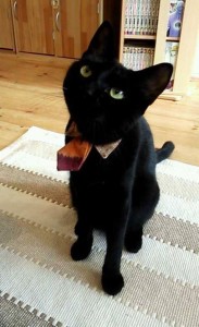 At any rate, the cats here all have food names. These are written on their collars and provide good ひらがな and カタカナ reading practice. They also like being slapped pretty hard on their butt. It’s disconcerting initially, but the staff will assure you that they enjoy it. A couple will violently play with your feet if they smell interesting enough. One cat has to wear clothes due to allergies, but she’s happy to lie on laps.