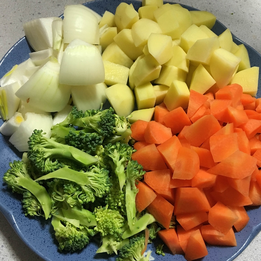 2 Potatoes, peeled and sliced into 2.5cm/1 inch cubes