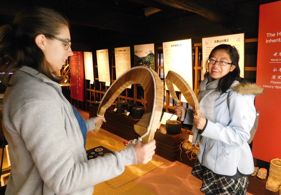 Ainokura, where we stayed, has a washi making experience from May to November; we wish we could’ve gone! Climbing up to the viewpoint to observe your subjects is fun but treacherous in the snow, especially for a clumsy and poor-footwear-choosing individual such as myself. The so-called Folklore Museum is highly recommended, and you can practice playing the sasara! Matsuya has a restaurant if you decide to stick around for lunch (when the minshuku do not provide a meal), and my companions enjoyed their zenzai. During the winter festival season, the houses are lit up and residents perform traditional songs and dances onstage. The illumination was beautiful despite the relative lack of snow, but I hope future years are blanketed further!