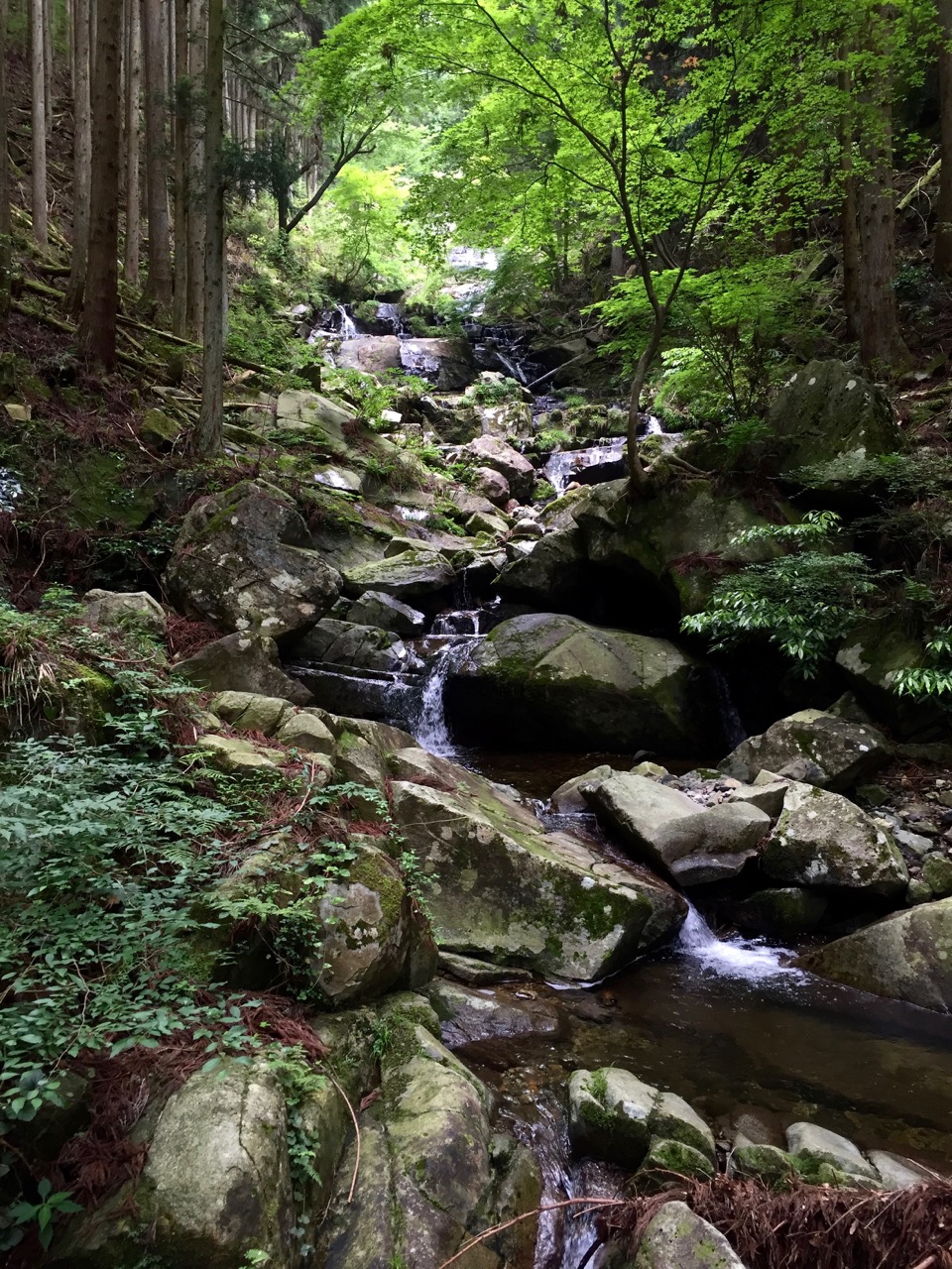 I set off at around 10am, along the forested Mitani course. The trail quickly became steep and after 15 minutes, lightly covered with beads of perspiration, I cursed my decision to go hiking on this humid July day. But this is the reality of hiking in a Japanese summer, so wiping myself off I continued. The first third of the hike skirts the edge of the multi-tiered, Mitani waterfall, and crosses over the water many times. I enjoyed hopping from rock to rock over the water, as it allowed a small respite from the heat and uphill battle. The path along the waterfall was quite damp and muddy, making it the perfect home for a hungry mountain leech. I caught one on my shoe, desperately searching for my skin, but managed to flick it off in time. If you do this hike make sure to wear long socks, and frequently check your boots for unwanted hitchhikers!