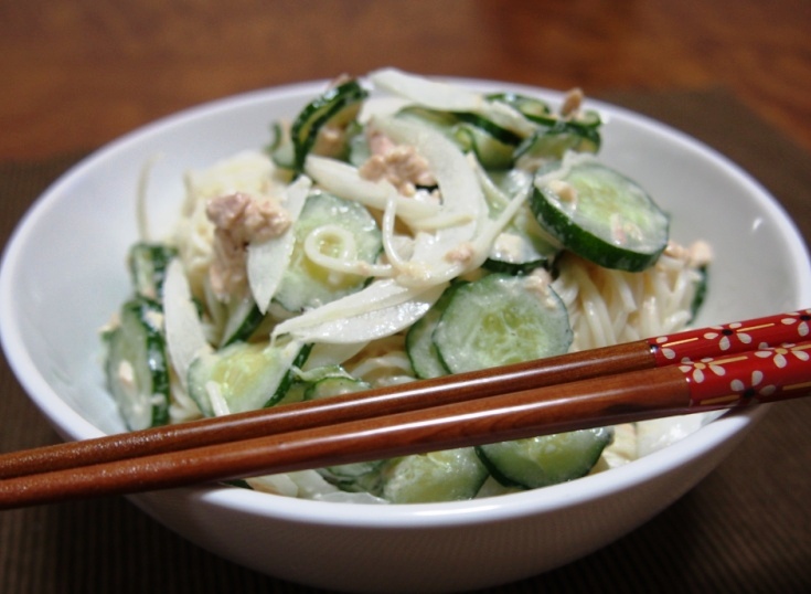 Summer in Japan makes me think of fireflies, green rice paddies as far as the eye can see, yukata, fireworks, wind-chimes, beer gardens and of course somen. Somen noodles are extremely thin wheat noodles that are sold dried and often eaten in summer in Japan. They are also eaten in the cooler months in a…