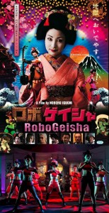 The film is a B-movie called RoboGeisha and it is indeed an educational one. In addition to their devotion to traditional arts, such as the playing shamisen and pouring beverages for rich businessmen, I learned that geisha are master robo-martial artists as well. Their techniques include, but are not limited to: geisha missile, geisha hari-kari, geisha chainsaw, geisha transform, bust machine gun, acid breast milk and fried shrimp attack. “GO TO HELL!†is their battle cry of choice. Furthermore, Robot Castle is their mortal enemy.