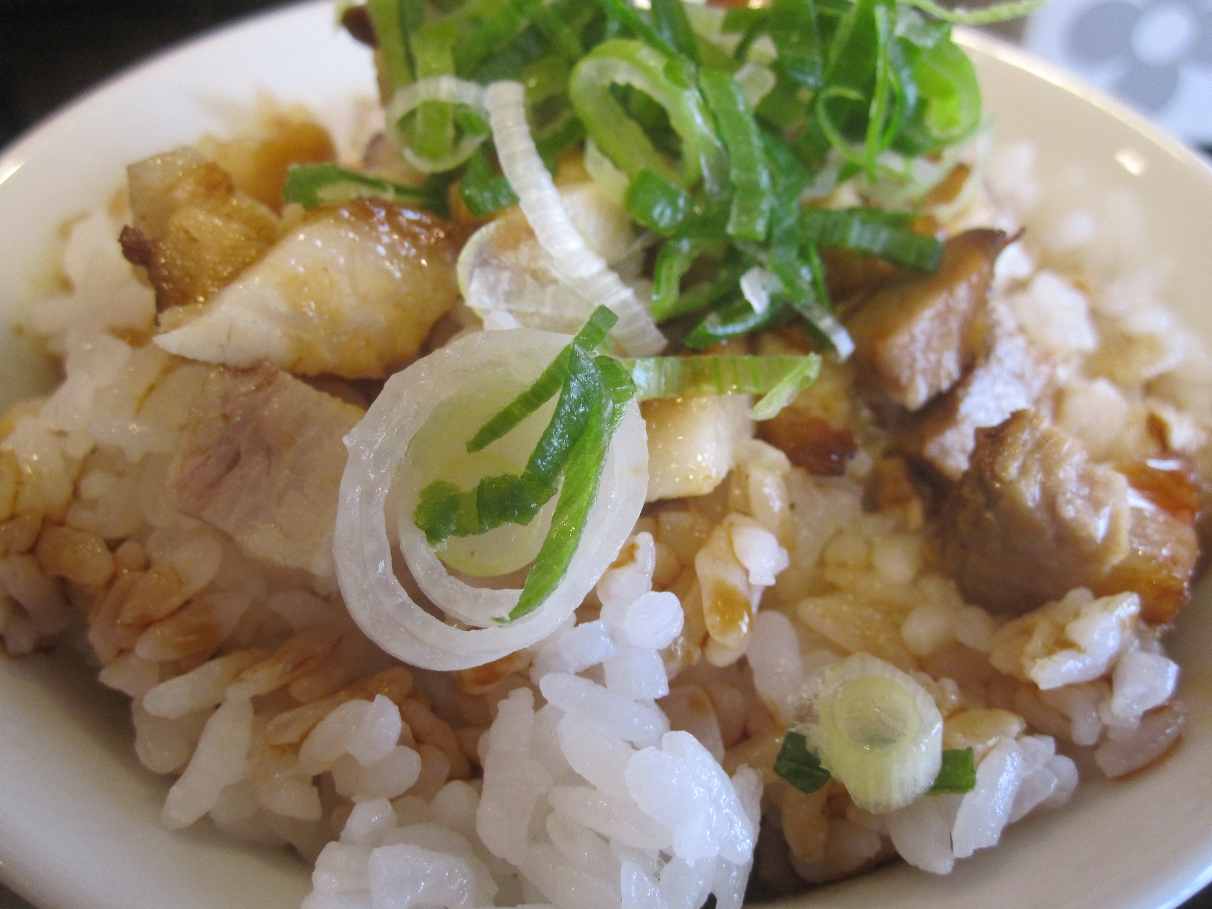 Serving size aside, the meal was delicious. The rice bowl was simply bits of roast pork and chopped green onions with a ponzu sauce, a fine addition for the price. The pork, included in the soup as well as with my noodles, was full-flavored and had a texture firm enough to know you were eating meat and not fat.