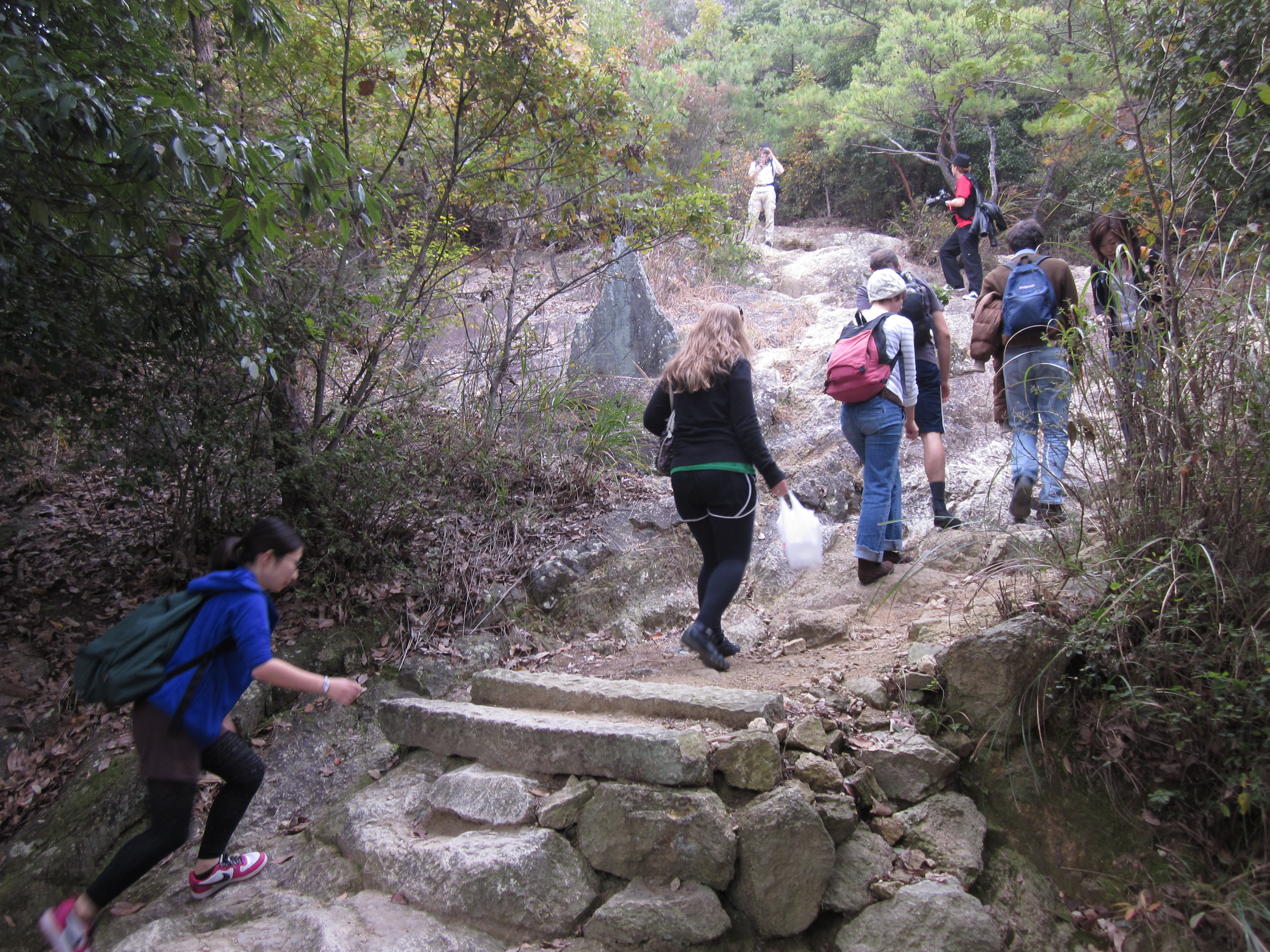 The next ride will be November 19th, starting from Himeji station and lasting until about sundown. Our plan is to use the free rental bikes available from the Himeji tourist office, but participants can also either rent one from the station (300 yen) or bring their own. All participants should also bring a picnic lunch (combini bento will cause you to lose the bento contest), and 500 yen to get in to the temple on top of Mt. Shosha. The ropeway costs 900 yen round trip.