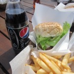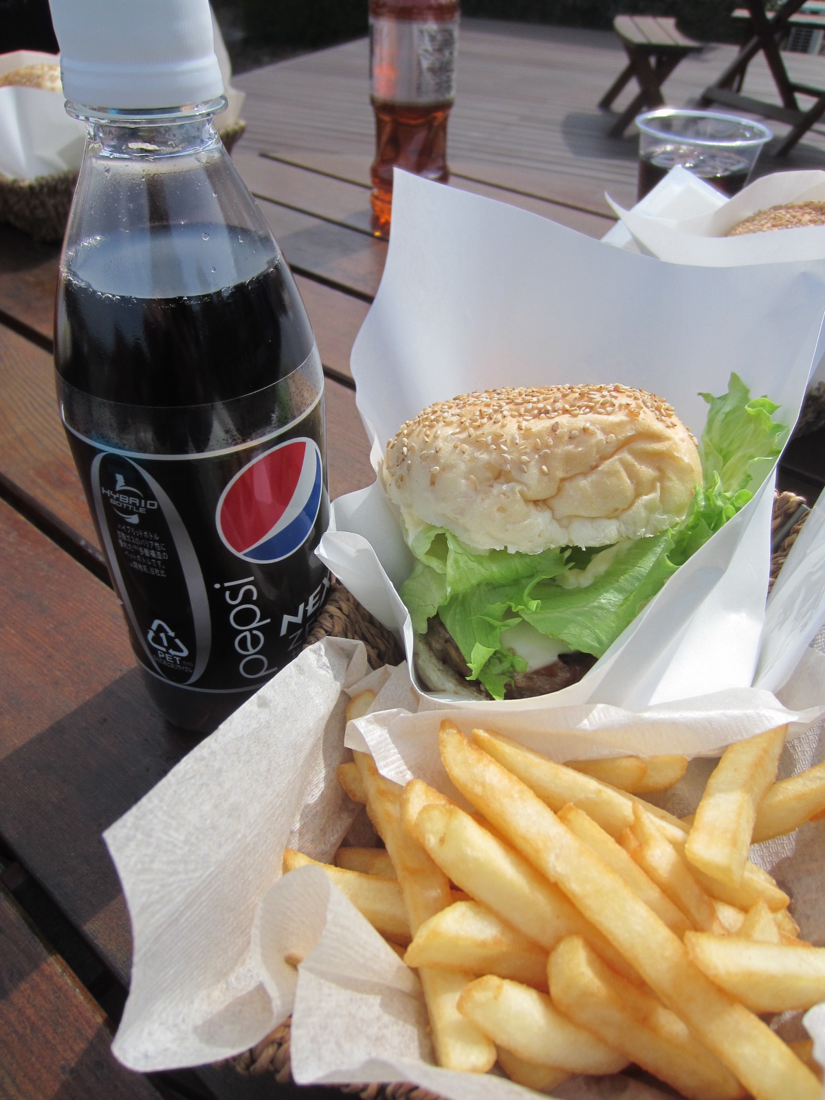 If you aren’t in the mood for tempura or soft cream, or it is closed as it was for us, you can head down the road to Awaji Country Garden (淡路カントリーガーデン) for one the best cheeseburger I’ve ever had. Random fact: Awaji breeds and distributes the amazing beef known as Kobe beef and Matsuzaka beef. In fact, if you walk from the Hanasajiki to the Country Garden like my friends and I did, you will pass by some Kobe beef cows. Nope, it didn’t ruin our appetite one bit, and so for about 1000円 we consumed the whole set: the savory and mouthwatering burger paired with American-like fries, a refreshing drink, and a small, delectable dessert. Even though it’s a food stand, don’t mistake it for fast food. It took about 20 minutes to get our individual, handmade burgers but it was sooooo worth it. As we sat on the cute picnic benches enjoying every morsel, I debated going back for seconds and I don’t even like hamburgers!