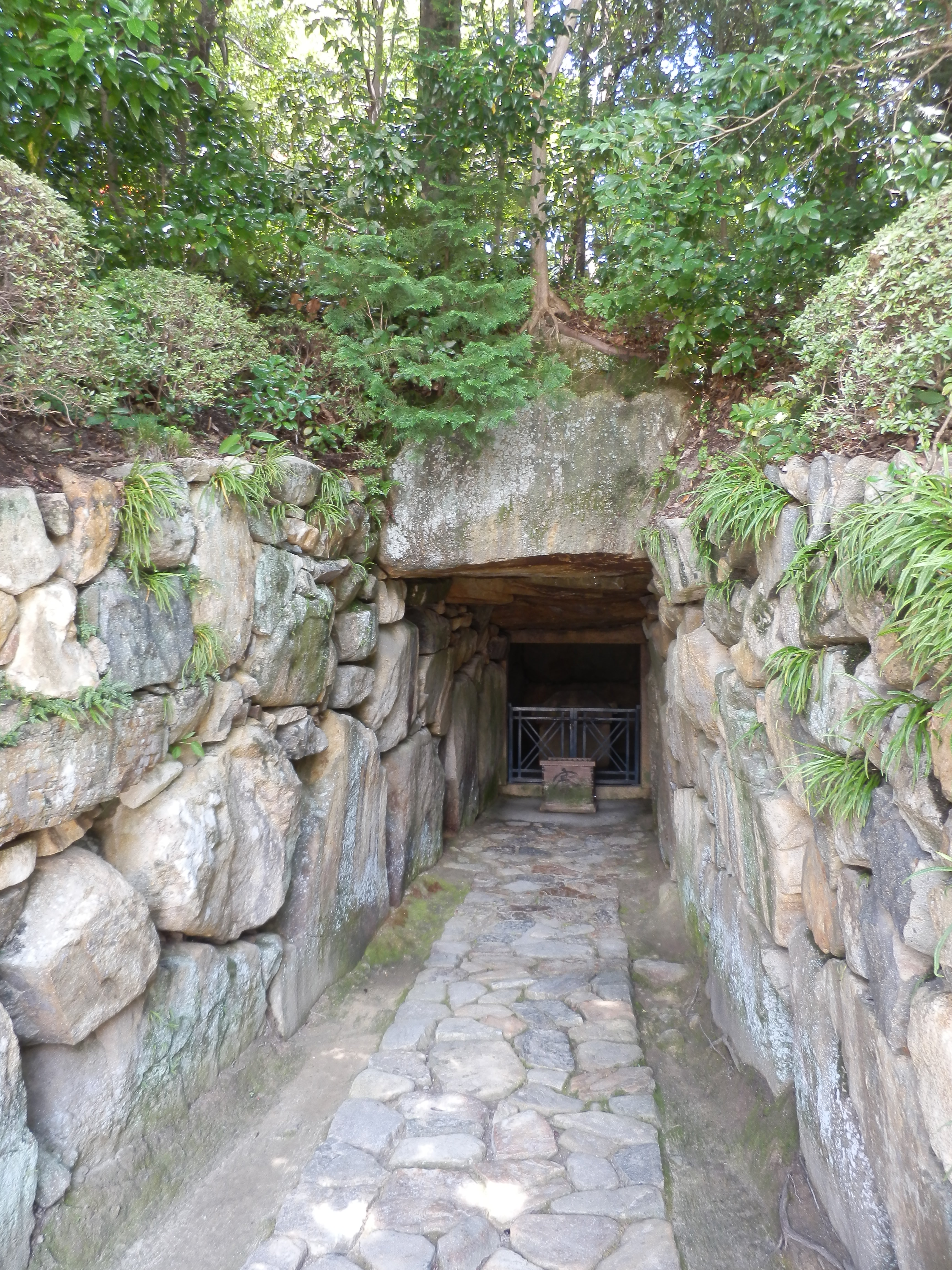 The beautiful, clean, modern feel of the place is tempered somewhat by the presence of a kofun just up under the hill to one side of the central courtyard. Kofun are ancient burial mounds, often megalithic in size. You can walk down a short tunnel and take a look at the stone tomb for yourself.