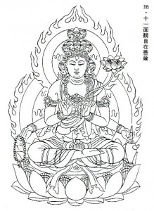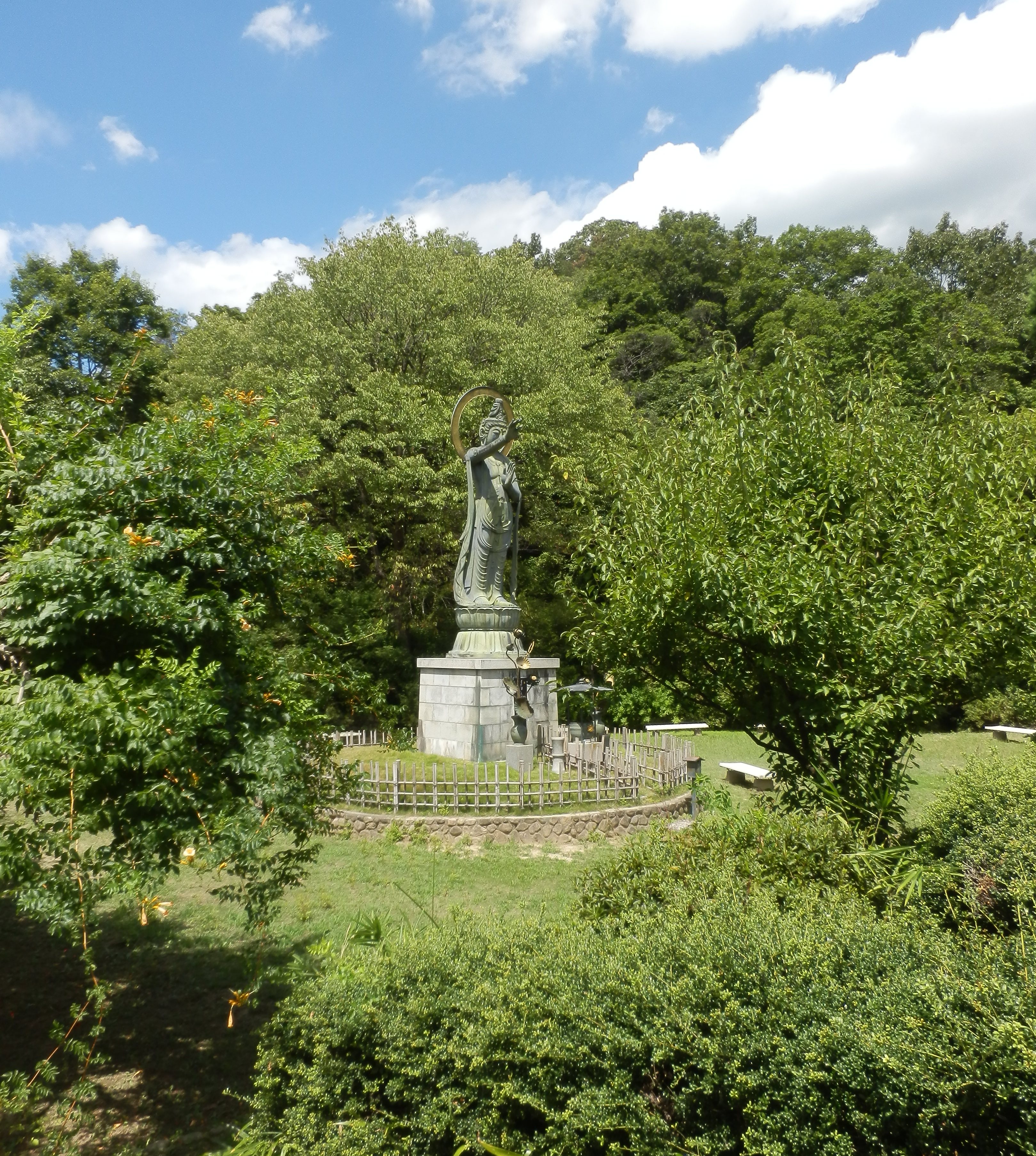 The principal image at this temple is another Juichimen Kannon, or the eleven-headed type we saw at Banshu Kiyomizu-dera. This one is open to public view monthly, on the 18th. The statue was modeled on Queen Srimala, an Indian patron of Buddhism, so it has foreign-looking features and a more elaborate headdress than other Kannon images you might have seen. The image is in between two other Juichimen Kannon images, together having 33 heads, and it’s said that if you cannot complete the full pilgrimage, praying earnestly before these three statues will give the spiritual effect of completing the pilgrimage.