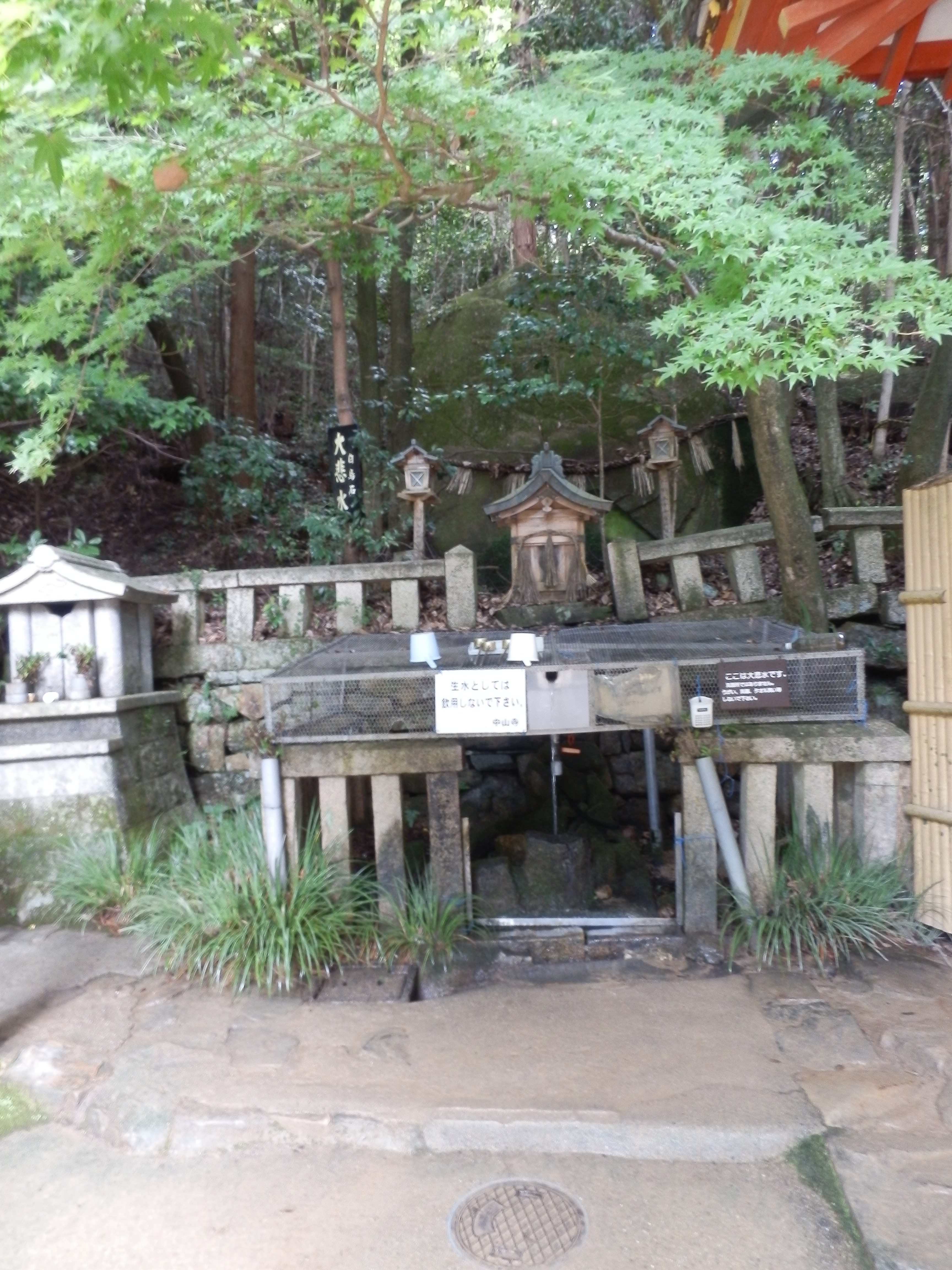 Nakayama-dera also has a fun hiking path up to its okunoin, or most sacred space. The trip takes about an hour and is not particularly tough (though I might not recommend it for pregnant women). There is a sacred spring at the okunoin at which you are welcome to fill your water bottle. White Swan Rock (白鳥石) is also located near the okunoin, said to be the rock on which a white swan alighted after flying out of the kofun lower down the mountain. The white swan is the kami (in this case a deified spirit) associated with letting go of grudges.