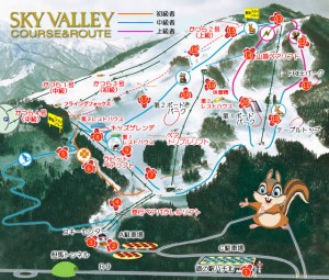 One of Hyogo’s bigger mountains, Sky Valley has 8 runs with the longest just over 3 kilometres. If you like to show off in the park, Sky’s has enough to keep you amused for the day with rails, boxes, kickers, a half-pipe and sometimes a quarter-pipe. There’s something for every level at Sky Valley, and although it lacks proper pistes for the very advanced, if the snow’s good then there’s lots of potential to make tracks between the trees. Adorable woodland animals make the piste map easy to navigate, but be careful, the mascot may look deceptively friendly!