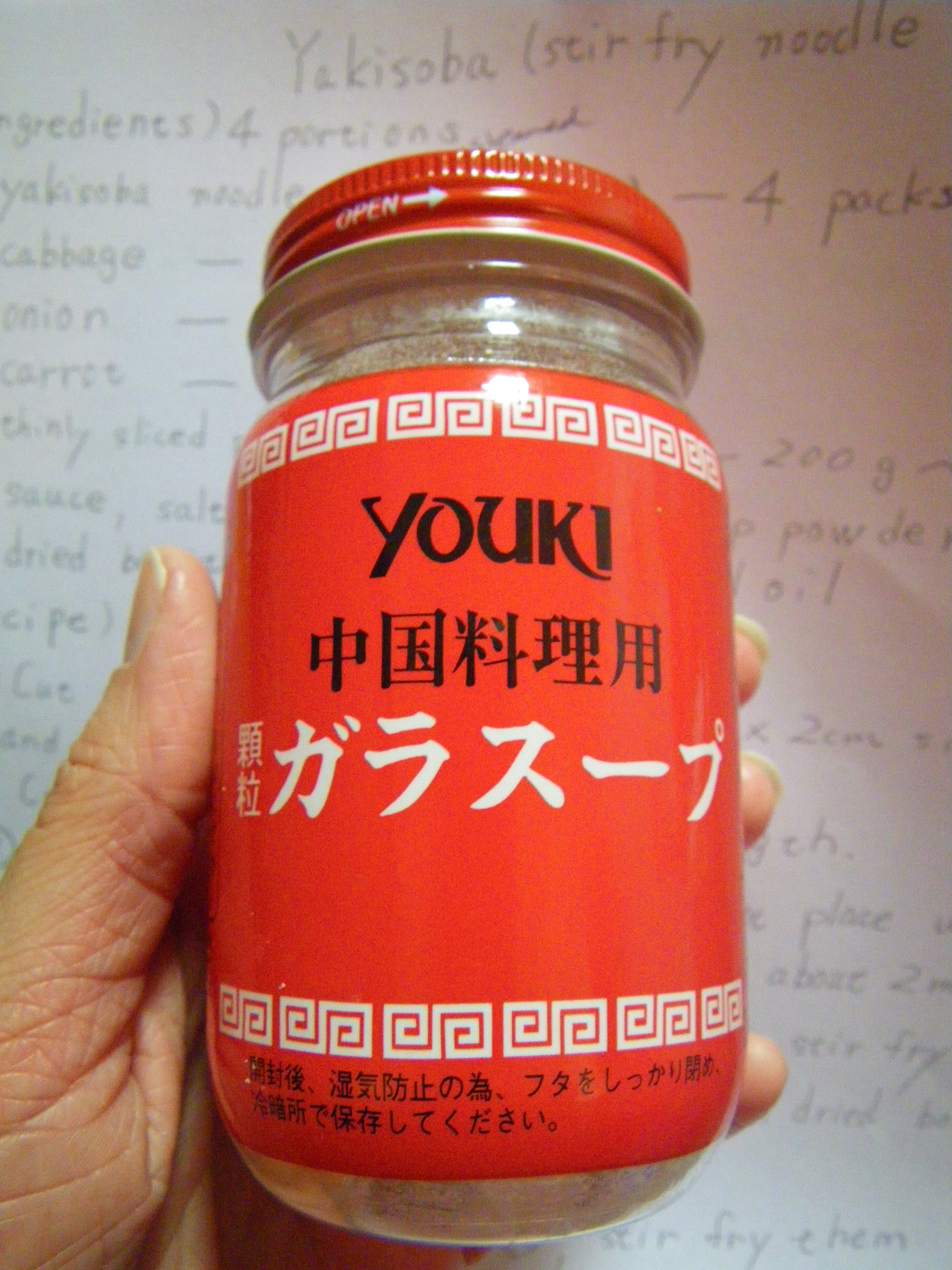 chicken soup powder granules (Youki brand with a red label, it’s in the Chinese section of the supermarket)