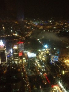To top off a touristy day we went to the top of Taipei 101 (NT$450). At one point it was the world’s tallest building, until Dubai decided to enter the fray of course. To get to the top of (what once was) the world’s tallest building, we rode the world’s fasted elevator, and between the 87th and 91st floors we were introduced to the world’s biggest Tuned Mass Damper (TMD), a huge ball of mass made to reduce movement in high rises, the future of earthquake proofing.