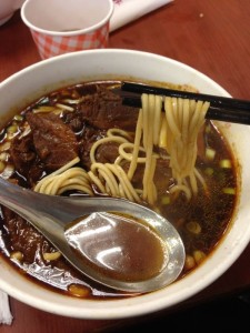 The other mouthwateringly famous, line-up outside for a table, type of food I had to try was Taiwanese beef noodle soup. A 10 minute taxi ride out of the city centre drove us, literally, into a crowd queuing outside a small, but full, noodle restaurant. The hearty noodle bowl came and food envy dissipated. The meaty concoction was incomparable. I was content with leaving now.