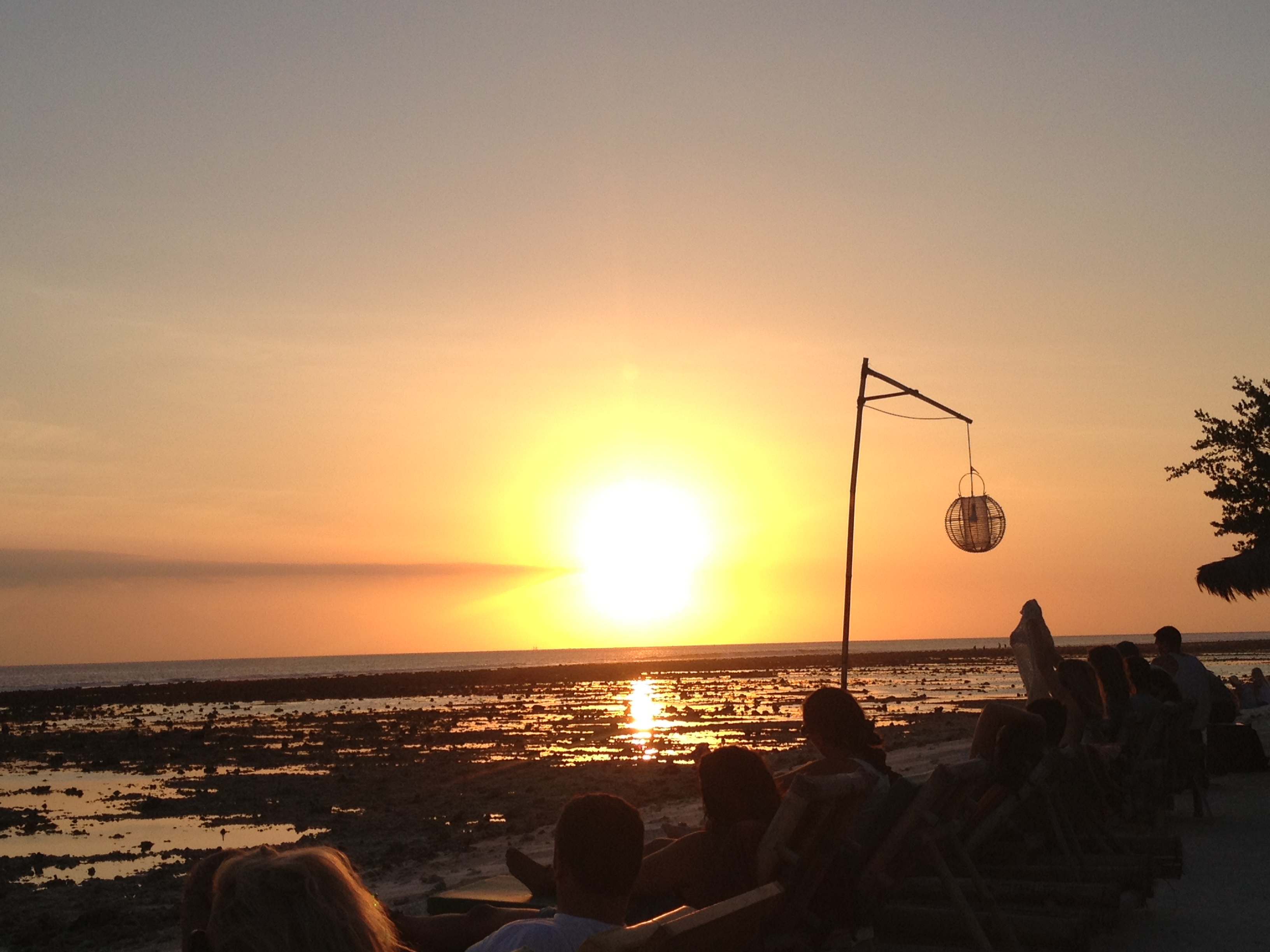 IMG_2514As a Muslim island Lombok has, so far, been little affected by the hordes of Australian sixteen year olds who stumble around Bali’s hub Kuta after one too many Smirnoff Ices. But fear not party people: Gili Trawangan is here for you. Whilst neighbouring islets Gili Air and Gili Meno offer zen-like calm and access to some of the best diving in the world, Gili Trawangan boasts not only the same diving access (approx. 15 minutes to all major sites, from reefs to wrecks), but also a buzzing nightlife scene. There are three official ‘party nights’ a week (each finishing at a different venue) on Monday, Wednesday and Friday. However there’s also a multitude of bars with music open every night; Sama Sama reggae bar is particularly good for its house band. If you happen to visit in Ramadan, when music has to be shut off at 11pm, it’s a little different, but no less fun, with beach-bar film nights and a nightly silent disco at ‘the Irish’ to please the hordes. Make no mistake though, Gili T hedonists are seriously committed to their island lifestyle, with many revellers going straight from sunrise cocktails at Surf Bar to a 7am yoga class for a pre-dive detox. If yoga, either post or pre party, appeals to you then try Gili Yoga for excellent morning and evening classes daily and an unbeatable position opposite the beach.