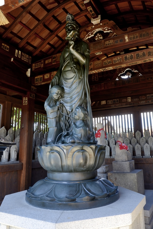 Finally, we have our standards, the front gates and the temple bell (ring it, but gently, as it is super old, the sign says). As seen at some other temples, there is a Mizuko Jizo (patron of the water babies), and the rarer Bokefuji Kannon (protector against senile dementia). Souji-ji is part of a Bokefuji Kannon pilgrimage (of which Imakumano Kannonji is also a part). Inside the Fubi-Kannon-Do (Hall of the Universal Compassion Kannon) you will find the miniature pilgrimage symbolizing all 33 temples.