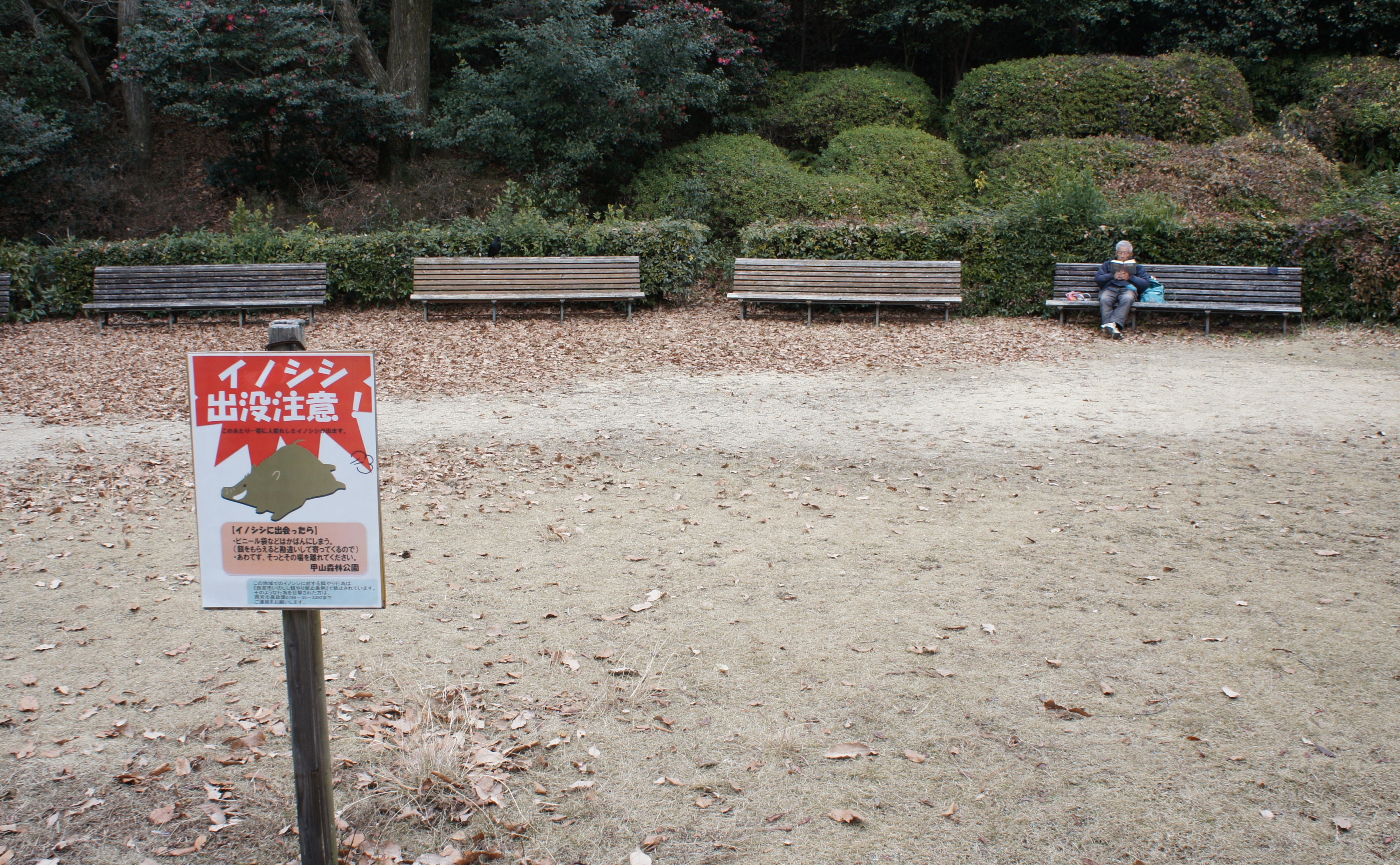 As frequent signage indicates, wild mountain boars are dangerous and I saw an elderly man reading on bench, utterly terrified of the possibility of their appearance (see photo). Main rules concerning mountain boars: a) Don’t feed them b) Try to leave the scene calmly and quickly if one appears.