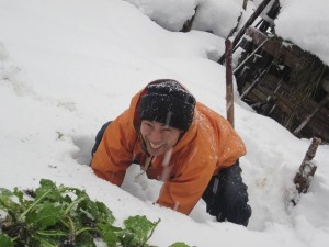There’s no gas supply at our house. When I first moved in, there was propane, but knowing I was planning to live sustainably, I returned the gadgets to the gas company. Instead, we heat our water for cooking and bathing with firewood. There’s no TV, either. I have a young daughter, but she doesn’t mind. She seems content to help us work the fields, gather the vegetables, cook miso soup and serve it to us. Occasionally, we’ll find an unpeeled mikan in our soup , but I think it’s good for her to grow up surrounded by nature. Our livelihood depends on these kinds of routines.