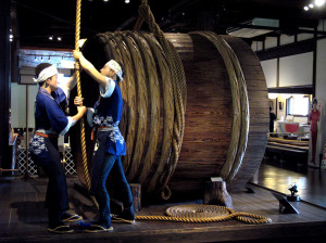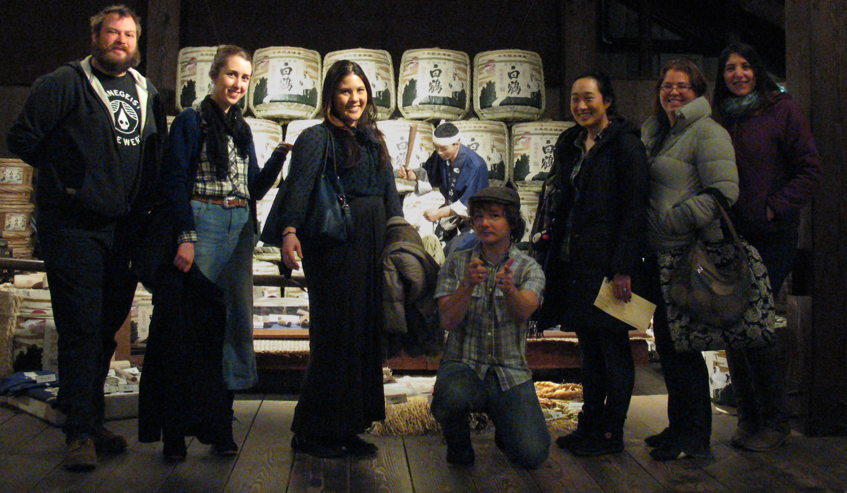 Bellies full, we traversed across the railroad tracks to the Hakutsuru brewery (“Japan’s number one selling brand!â€) With videos dating back to at least the 80’s at every display, we learnt the ins and outs of sake brewing and why Hakutsuru’s sake stands above the rest. This brewery-museum has two floors filled with life-size displays. At the finish line there stood the much anticipated sake tasting room. There were even cake samples in the shop. Some of us took to dressing up in the brewery’s outfits and posing with massive bottles of sake. Since we were already in the area, we decided to drop by another brewery, the Kiku-Masamune brewery (“TOP BRAND Karakuchi in Japanâ€). We watched a ten minute film in a mini theatre reporting on the special Kimoto method of creating a sake with a “dry, yet rich tasteâ€. We ended the day with a quick browse around the shop and more sampling.