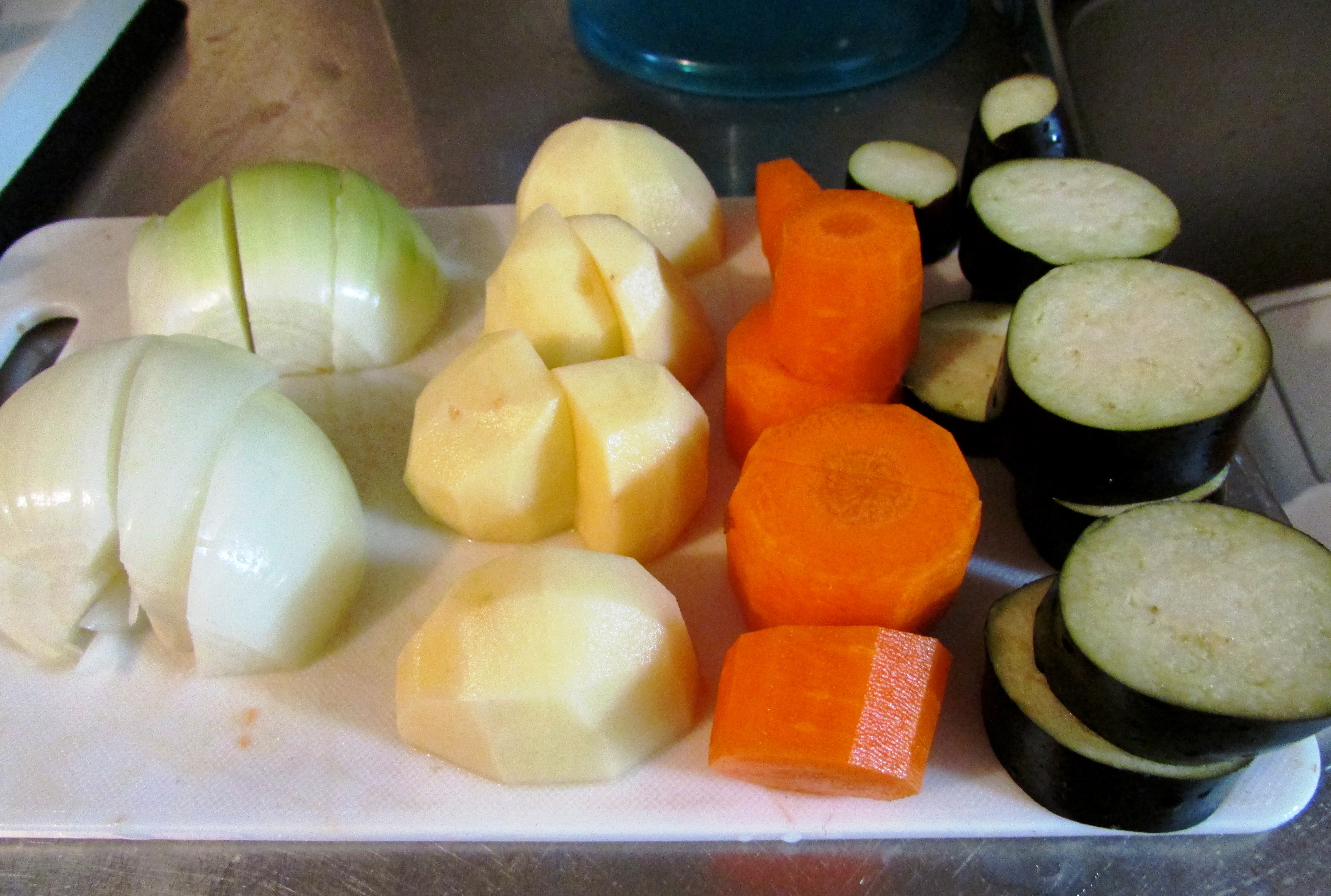 6. Add aubergine and cover pot with lid. Simmer for a final 5 minutes.