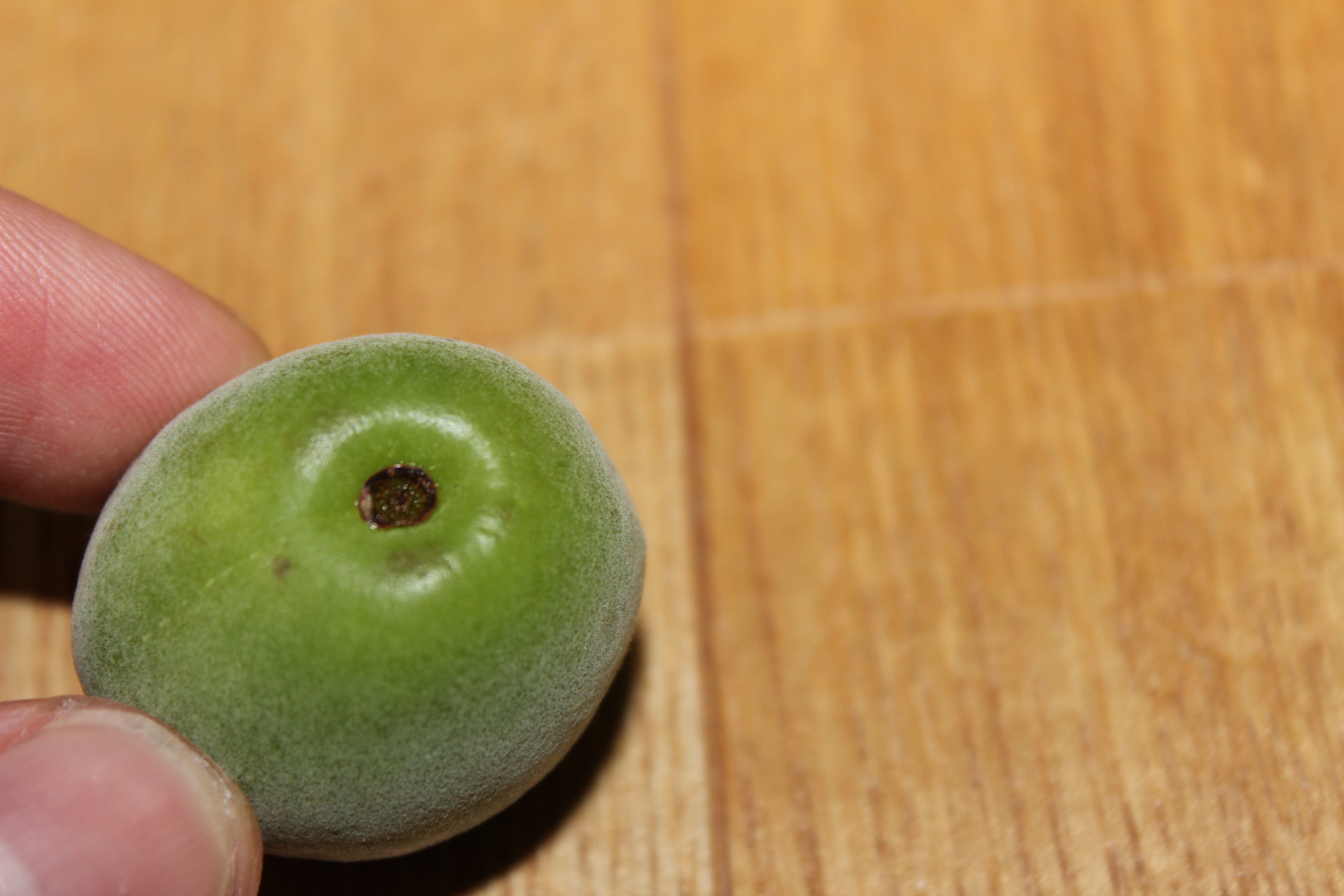 2.Wash and de-stem your ume, ensuring that they are well washed and dry before you put them into the jar. As even a small amount of residual water can cause the fruit to go mouldy under the liquor, I recommend patting them down with a paper towel then letting them air dry for a couple hours before moving to the next step. You will also want to spot check each and every ume for blemishes, removing any that have bruises or broken skin.