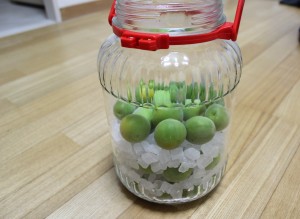 If, like me, you happen to find yourself living in Japan, procuring such a jar will be of little trouble as they sell specially made umeshu double sealed glass jars in the supermarkets with the other ingredients. If not, well you’re not out of luck. Basically, you’re looking for a large thick glass jar that can be sealed tightly as its contents may sit in there for years!