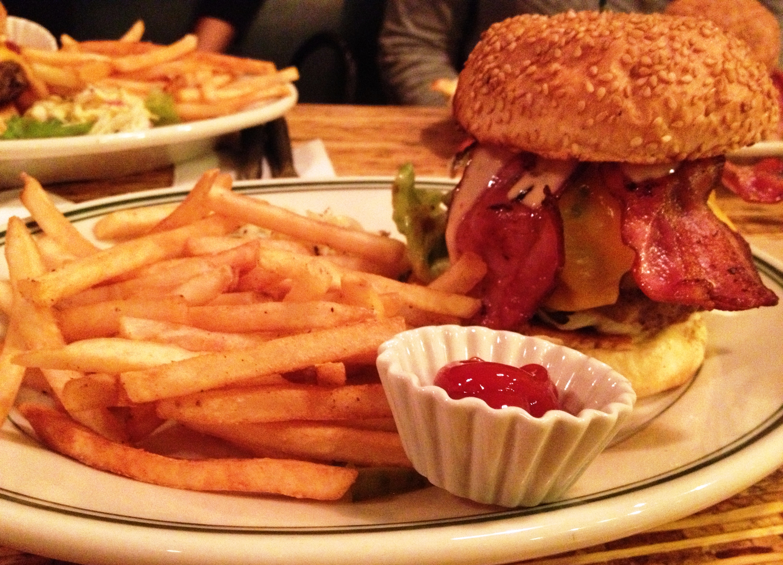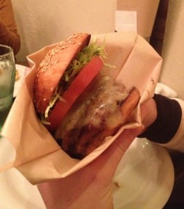 Café Lamp, Himeji [Charlotte and Cherie both ate cheeseburgers]  Charlotte says: For a café which began as a bakery it’s especially disappointing that the buns have let me down every time I’ve eaten here, being overcooked and crumbling apart at each bite. The café itself has a cool atmosphere though and friends swear I’ve just been unlucky with the buns.  Burger: 2/5 Venue: 3/5 Overall experience:3/5  Cherie says: I have to agree with the bun situation,but I gave Lamp a second chance and they delivered. Even with the cosy place full, they managed to send out well-seasoned, plump patties to satisfy all kinds of hungry. I like Lamp, but I don’t love Lamp. (I am prepared to take the consequences of that statement from all devoted Lamp fans in Himeji.)  Burger: 3/5 Venue: 3/5 Overall experience: 3/5 Â