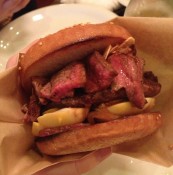 Cherie says: The smell of fried onions leads the way to burger heaven. Yes you’re sat on a plastic seat looking at a plastic sheet but nothing matters after you unwrap the toasty foil to reveal the secret-sauce covered burger inside (this is when you’ll hear angels sing). The crunch of fresh salad and the simultaneous burst of flavour from the hot meat draw textures and tastes together harmonically. Just go. Â Burger: 5/5 Venue: 3.5/5 Overall experience: 4.5/5 Â Â