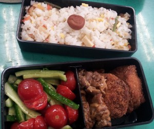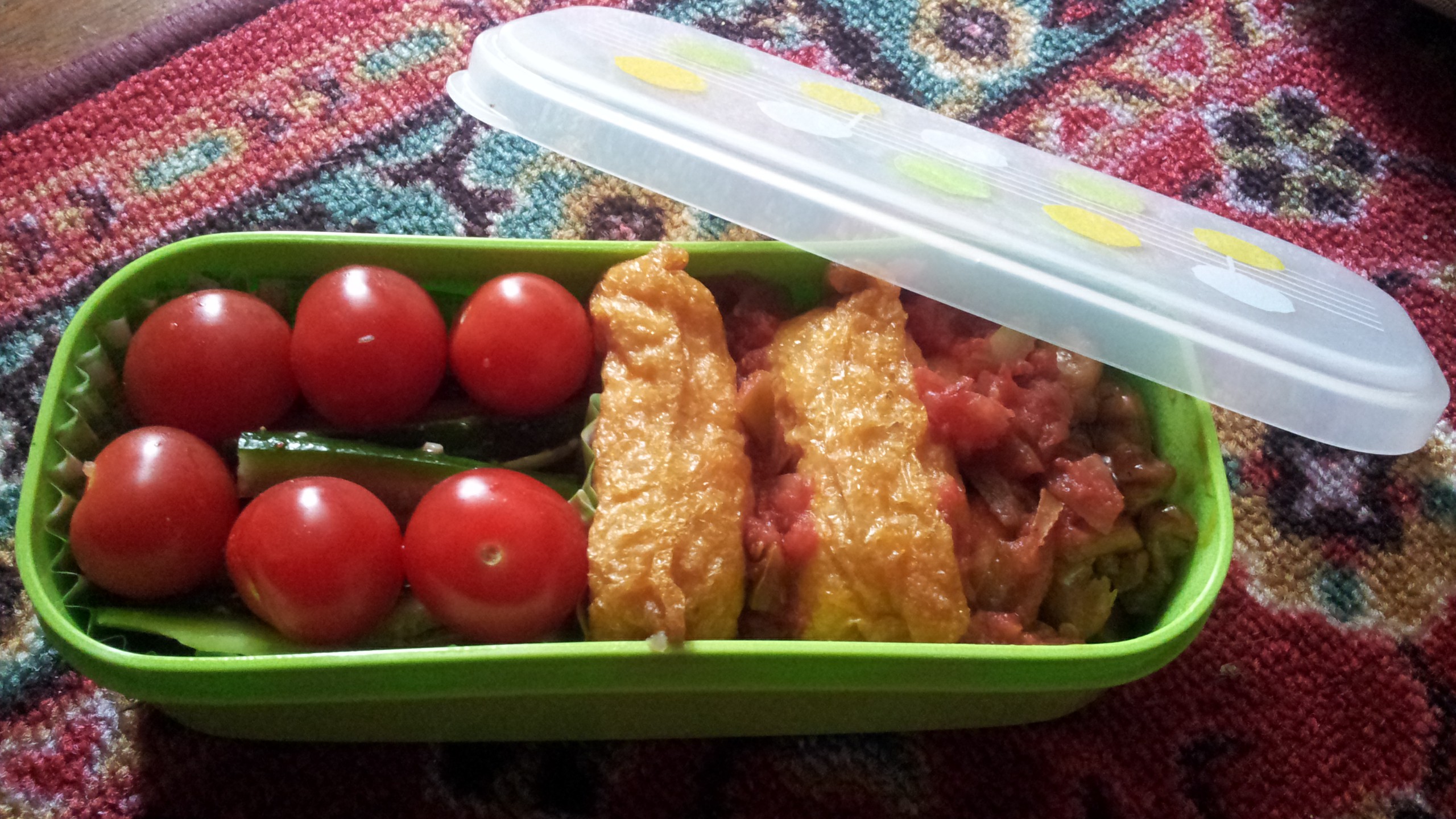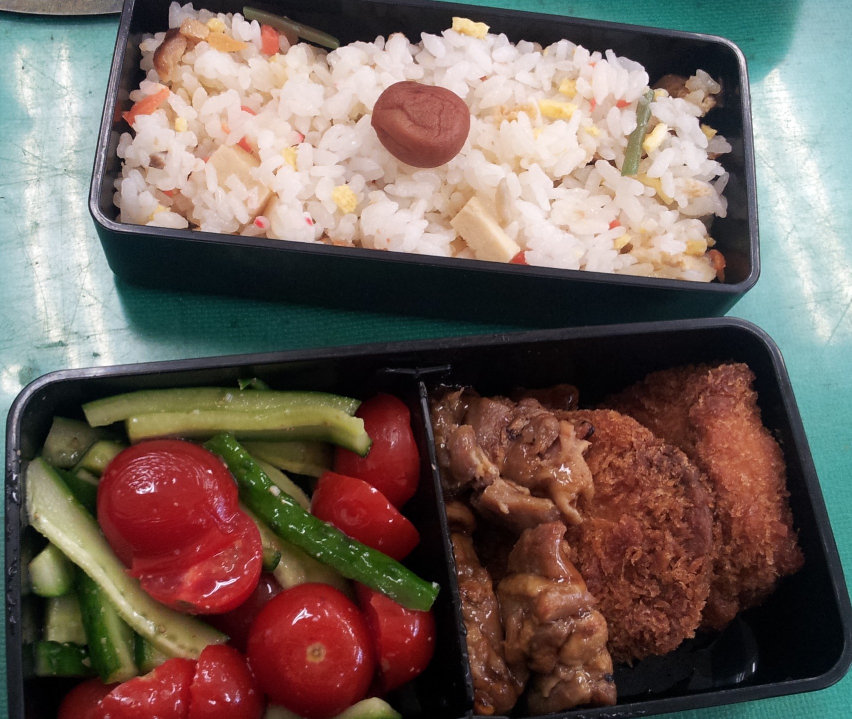 The typical way to construct a bento is to fill half the box with rice, a quarter with protein, and fill the rest with vegetable or fruit dishes. Of course, there are as many variations on this theme as there are bento eaters. Dieting bentoists often invert the proportions with half the bento consisting of vegetables and only a quarter rice. The fiber conscious substitute whole grains, brown rice, or options like quinoa. Bento lends itself to a multitude of varieties and accommodations. Today’s bento chefs even fill their boxes with things like tortillas, lasagne, and fried green tomatoes. The modern bento can take on any flavour, cuisine, or style, as long as it’s a whole meal packed together into a box or box-like container.
