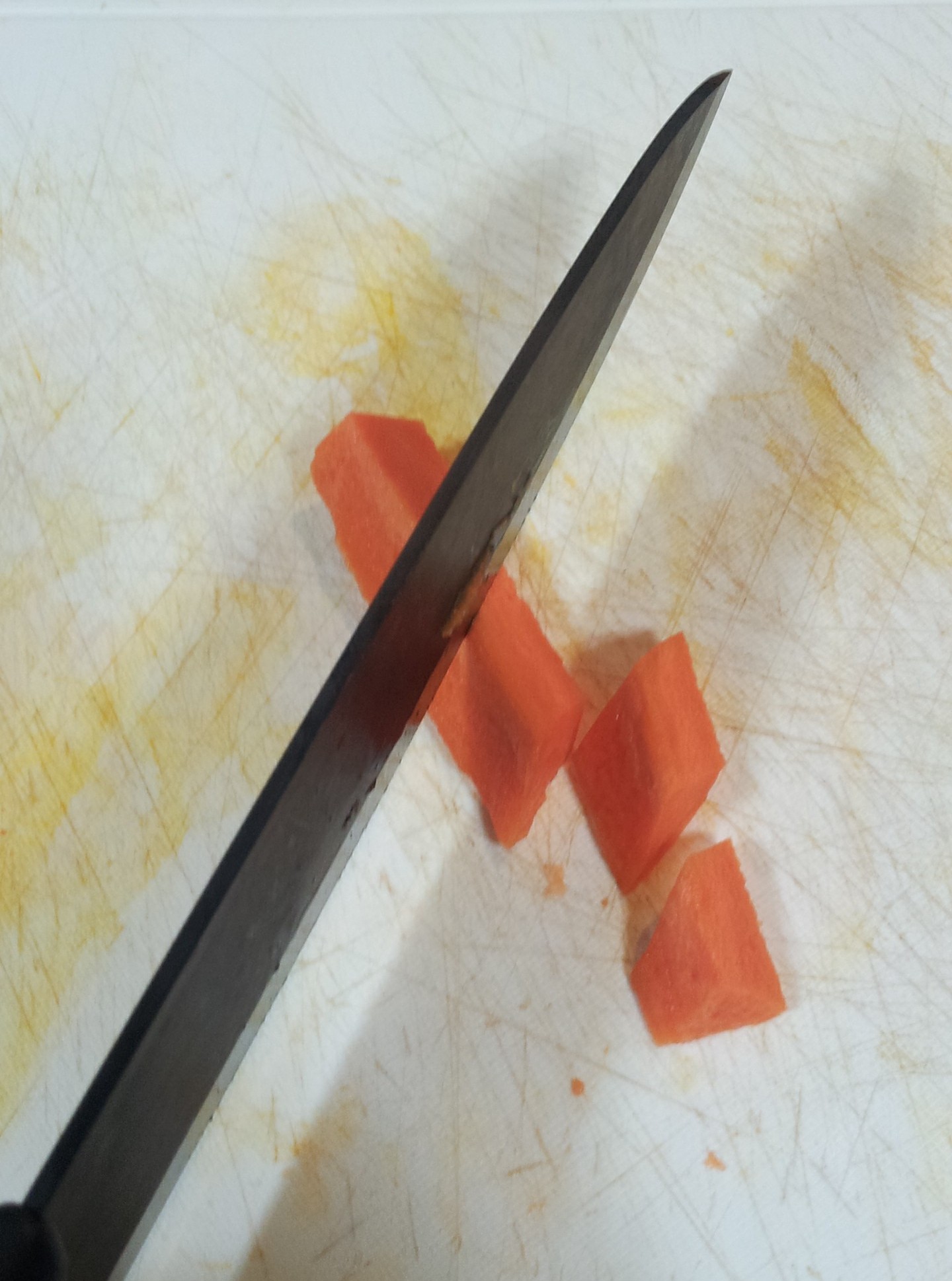 The Rolling Diagonal – Same as the diagonal except the food is rolled 90* after each cut. The resulting uneven shape makes slippery food easier to pick up with chopsticks.