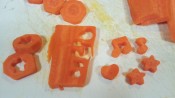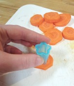 Another handy cutting tool is the shaped cutter. These mini cookie cutters are used to make cute shapes from carrot slices, cheese, ham and other flat foods. Cutting a few shapes to spread across the top of the bento instantly makes a plain meal adorable.