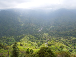 About halfway along the trail, the railroad disappears and you will enter a dense forest area, beginning the ascent up into the mountains. The path here is rougher, with lots of stones and climbing as well as a series of tall wooden staircases. The vegetation is thicker and previously forgotten paths and sunken bridges are visible in places.