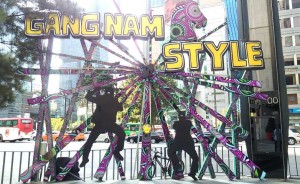 As most other tourists do, we ventured out to Gangnam. Near the train station is a stage paying homage to Psy; Sarah couldn’t resist pressing the button which filled the area with “Gangnam Style†for several seconds. We walked around looking at some of the shops while being bombarded by superhero-costumed advertisers. We also made the journey over to Lotte World, but the overwhelming number of people visiting both the mall and the theme park had us fleeing after acquiring a travel adaptor.