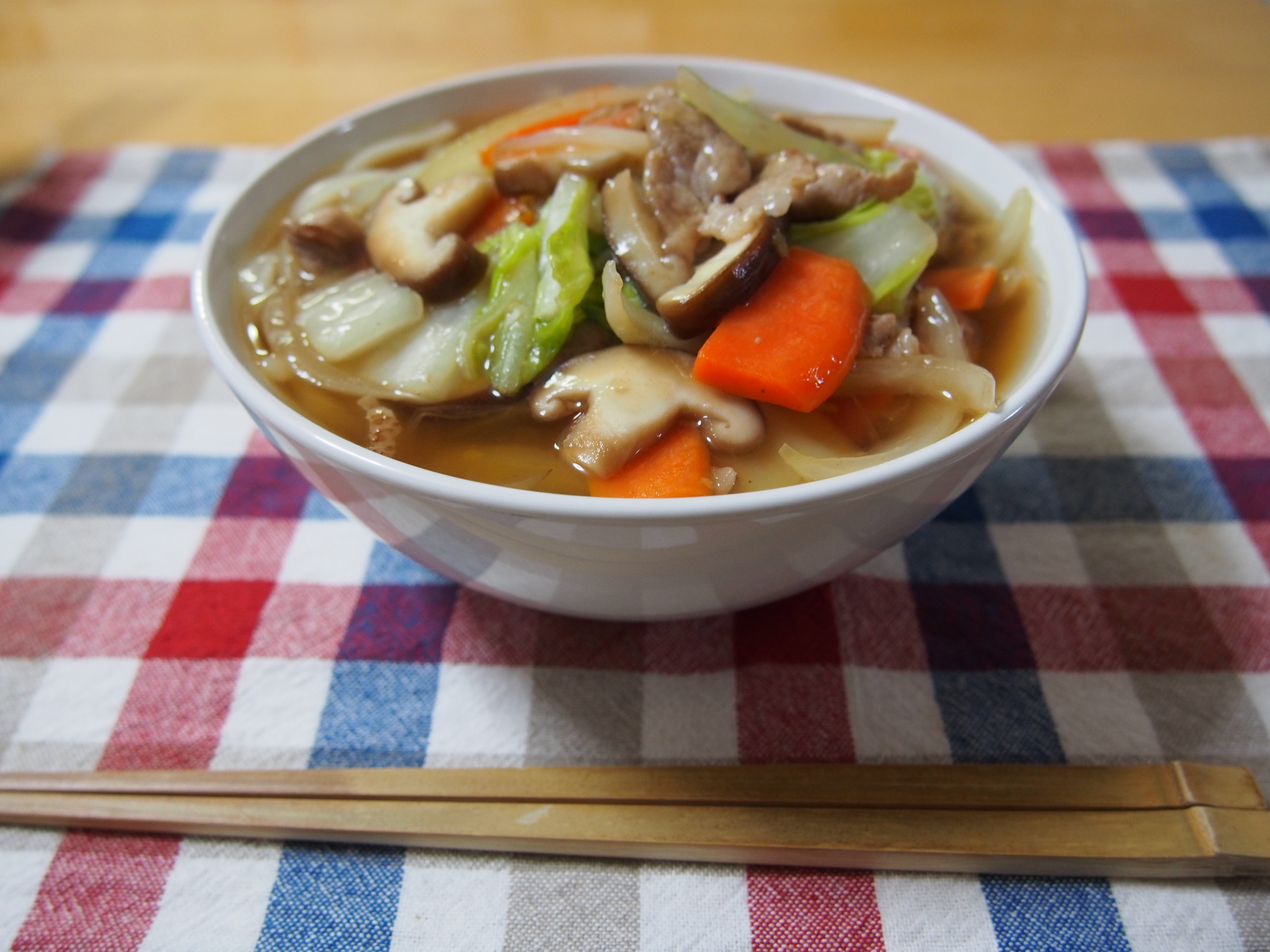 This month’s recipe is a popular winter dish in Japan – hearty udon noodles in a light soup topped with lots of veggies. It’s super simple to make so you’ll be back under your kotatsu in no time. Enjoy!