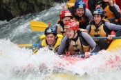 The annual Shikoku rafting trip has, over the past few years, become a permanent fixture in the Hyogo AJET calendar, and with good reason. Each year, between 20 and 25 JETs from Hyogo head out into the remote wilderness of a place called Happy Raft in Kochi prefecture to enjoy a wet and wild time on the October long weekend. This year, thanks to the collective planning of the brilliant Sylvette Pinet and, less helpfully, your author, there were 24 participants, 5 cars, 1 pumpkin pie and a lot of screaming.