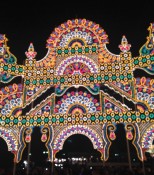 The experience is a magical one. A few minutes before the lights go on, a hush falls over the crowd. While anticipation begins to rise, voices drop to whispers. A countdown begins in the dark, a collective breath is held, and then, like a wave, the lights bloom along the street. The whole world seems to glow in a myriad of colors as intricate patterns light up the street. The entrance itself is a work of art, but the truly remarkable display lies at the center of the park at the end of the illumination: an all-encompassing ring of endless color and light.