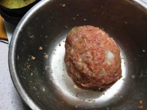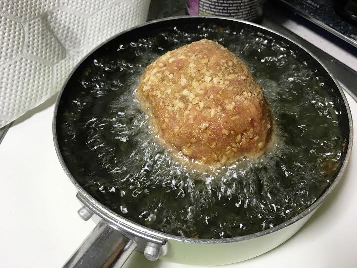 - Coat the giant meat balls with flour, then egg white and then coat with panko bread crumbs.